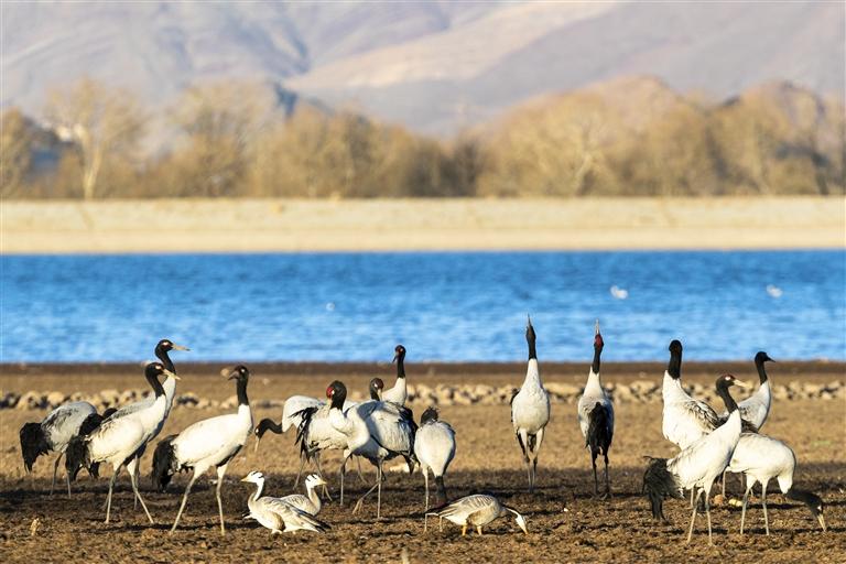 國家一級(jí)保護(hù)動(dòng)物黑頸鶴,是唯一生長、繁殖在高原的鶴類。每年冬季,大批黑頸鶴從繁殖地遷徙到西藏雅魯藏布江中游河谷地帶越冬,它們會(huì)在河谷、農(nóng)田、沼澤地里覓食嬉戲,享受冬日暖陽。[詳細(xì)]