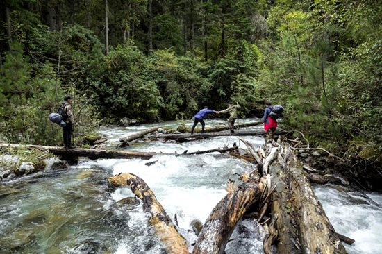 科研人員在調查途中。圖片由山水自然保護中心提供