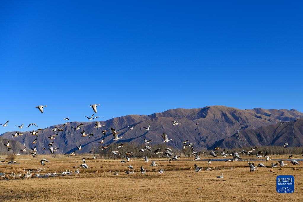 唐嘎鄉(xiāng)位于拉薩市達(dá)孜區(qū)東北部,這里每年冬季都會迎來黑頸鶴、斑頭雁、赤麻鴨等候鳥。這些在此越冬的“客人”和周邊的田園、濕地共同構(gòu)成高原冬季美景。