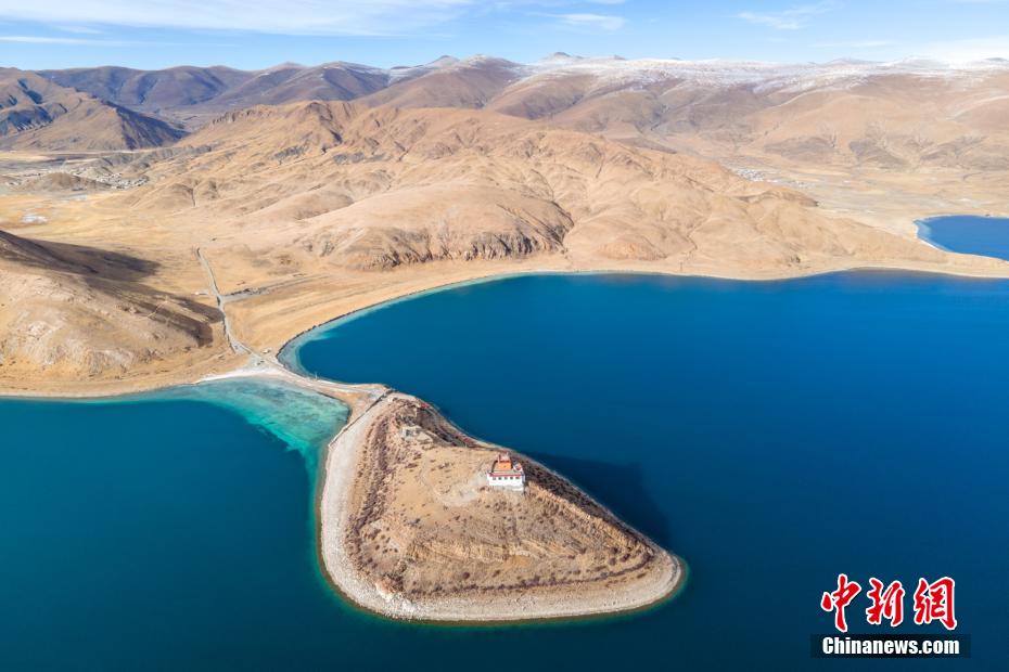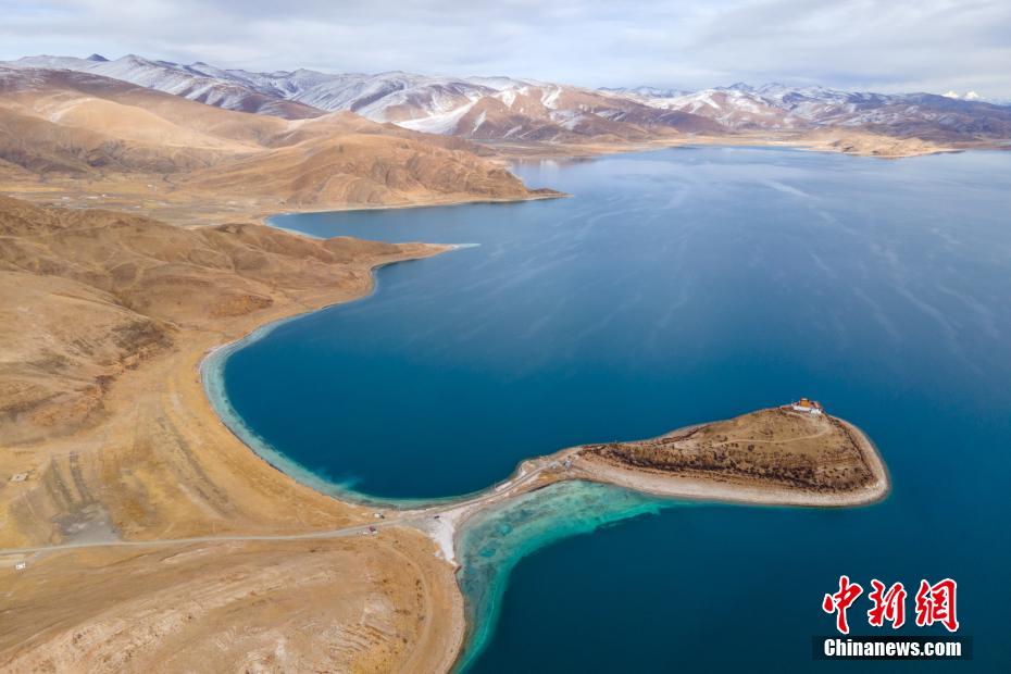 12月28日,羊卓雍錯(cuò)湖岸風(fēng)光。羊卓雍錯(cuò)藏語意為“碧玉湖”,與納木錯(cuò)、瑪旁雍錯(cuò)并稱西藏三大“圣湖”。羊卓雍錯(cuò)湖面海拔4441米,東西長130公里,南北寬70公里,湖岸線總長250多公里。28日,中新網(wǎng)記者自駕前往羊卓雍錯(cuò),翻過山口,到達(dá)湖岸東北面的日托寺,沿途盡是冬日高原湖光山色之美,無人機(jī)航拍鏡頭下,遠(yuǎn)處雪山、冰川巍峨屹立,堪稱絕美。 江飛波 攝