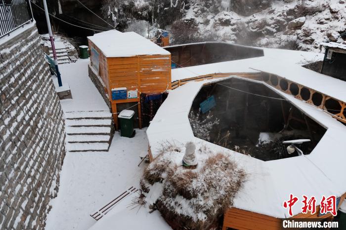 冬日,德仲溫泉周邊被積雪覆蓋。25日深夜,記者體驗(yàn)時(shí),溫泉池內(nèi)水霧繚繞,抬頭便可以看到夜空中星星閃爍,十分奇妙。