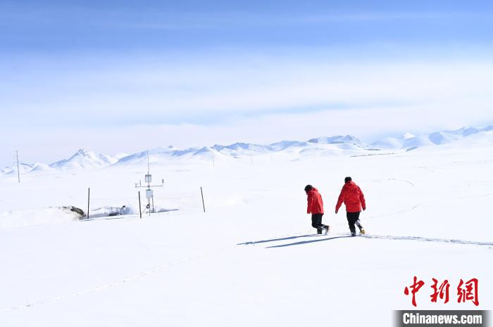緩慢行駛過雪路,抵達(dá)納木錯(cuò)鄉(xiāng),中新社記者與中科院納木錯(cuò)多圈層綜合觀測研究站(西藏納木錯(cuò)高寒湖泊與環(huán)境國家野外科學(xué)觀測研究站,簡稱納木錯(cuò)站)的兩位觀測員匯合。