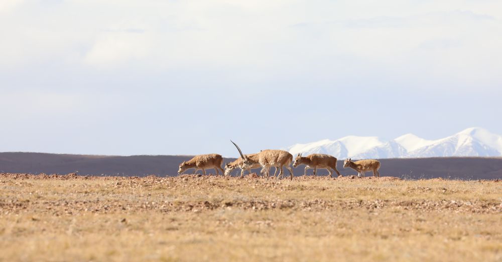 這是2021年9月28日在三江源國家公園拍攝的五只藏羚羊。新華社記者 李占軼 攝