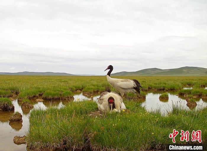 圖為黃河源頭瑪多境內(nèi)濕地的黑鶴。 瑪多縣委宣傳部 供圖