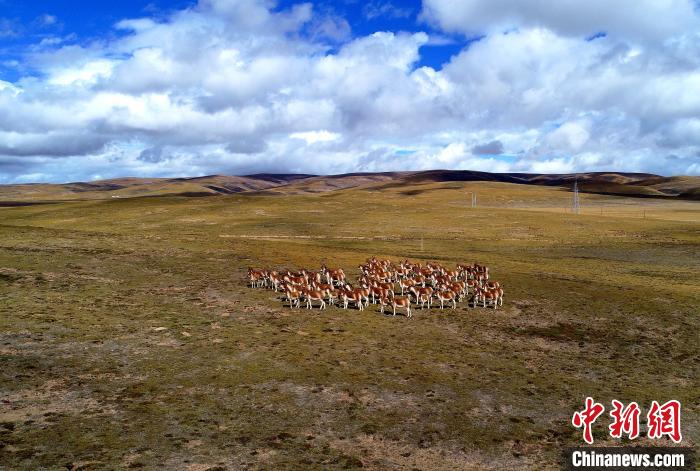 圖為三江源國家公園黃河源園區(qū)內(nèi)的藏野驢群。 瑪多縣委宣傳部 供圖