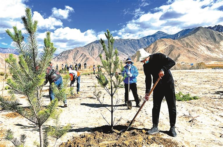圖為扎囊縣義務(wù)植樹活動現(xiàn)場。記者 段敏 攝