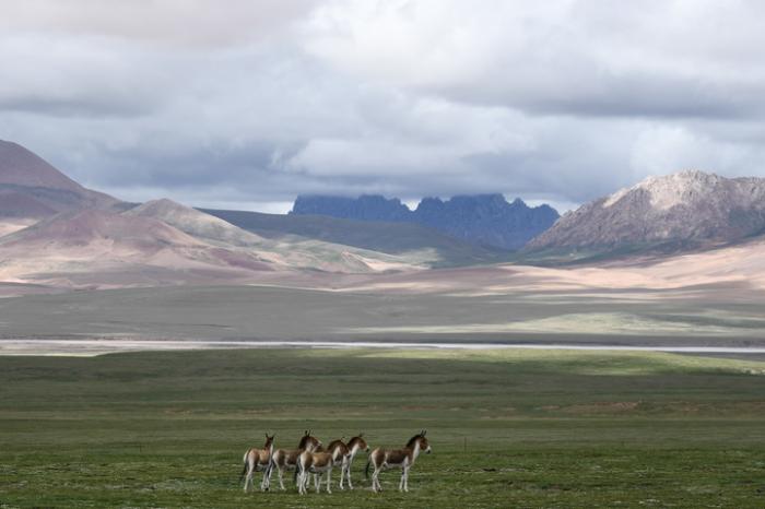 2021年7月,一群藏野驢出現(xiàn)在三江源國(guó)家公園。新華社記者張龍攝