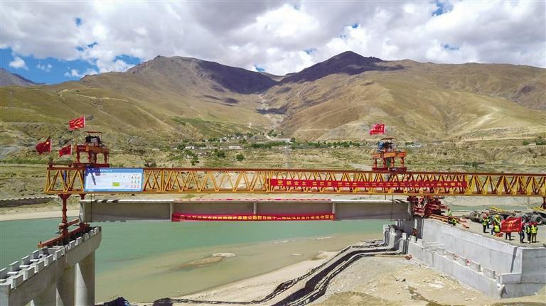 6月2日16時,正值端午佳節(jié)前夕,中鐵四局雅(安)葉(城)高速拉日公路項目跨雅魯藏布江施工的切娃雅江大橋歷時362天順利完成架梁任務,成為拉日公路項目二期率先完成跨雅魯藏布江大橋架梁施工的單位。