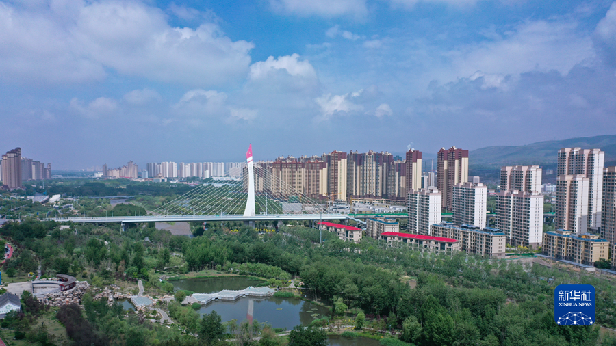 這是6月4日在青海省西寧市拍攝的一處濕地公園(無人機照片)。新華社記者 張龍 攝