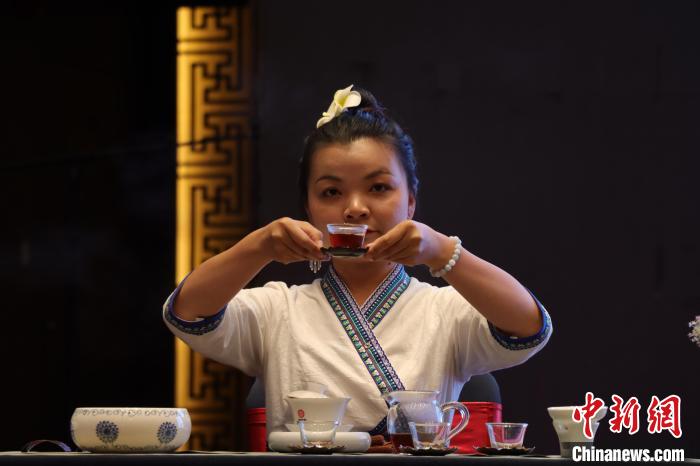 圖為國家高級茶藝師現(xiàn)場沖泡低氟普洱健康茶。 米瑪歐珠 攝
