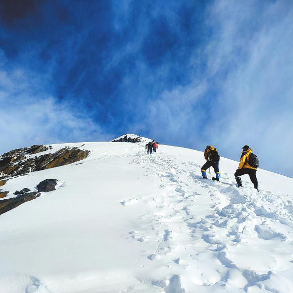 圖為戶外愛好者攀登至四姑娘山二峰海拔5100米處。 扎西 攝(資料圖片)