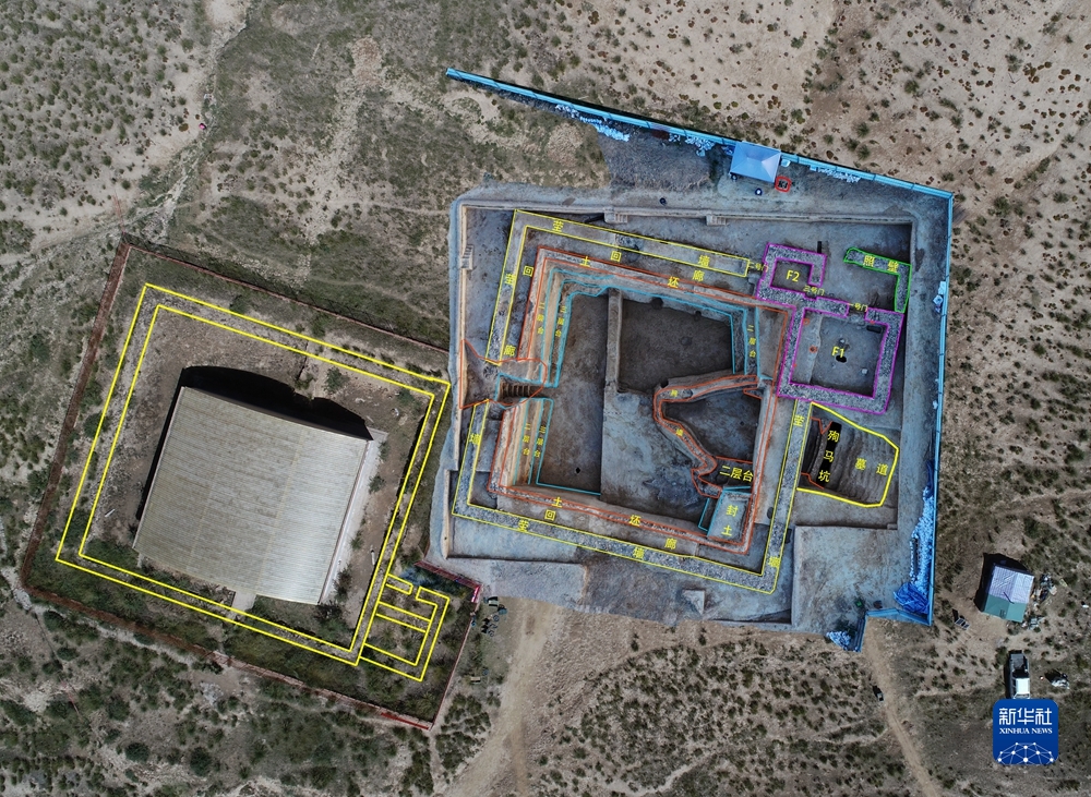“2022年的工作重點(diǎn)是對(duì)2007QM1進(jìn)行保護(hù)性清理發(fā)掘。”中國(guó)社會(huì)科學(xué)院考古研究所副研究員韓建華介紹,目前2007QM1清理發(fā)掘工作已經(jīng)完成。據(jù)介紹,2007QM1位于2018血渭一號(hào)墓西側(cè),緊挨2018血渭一號(hào)墓西塋墻。早年已發(fā)掘出塋墻、地上建筑、墓道、甬道、照墻和墓室,但未公布考古資料。為保護(hù)展示遺址,經(jīng)重新發(fā)掘,確認(rèn)該墓墓園形制和規(guī)模與2018血渭一號(hào)墓墓園相似。