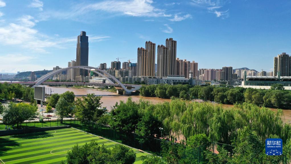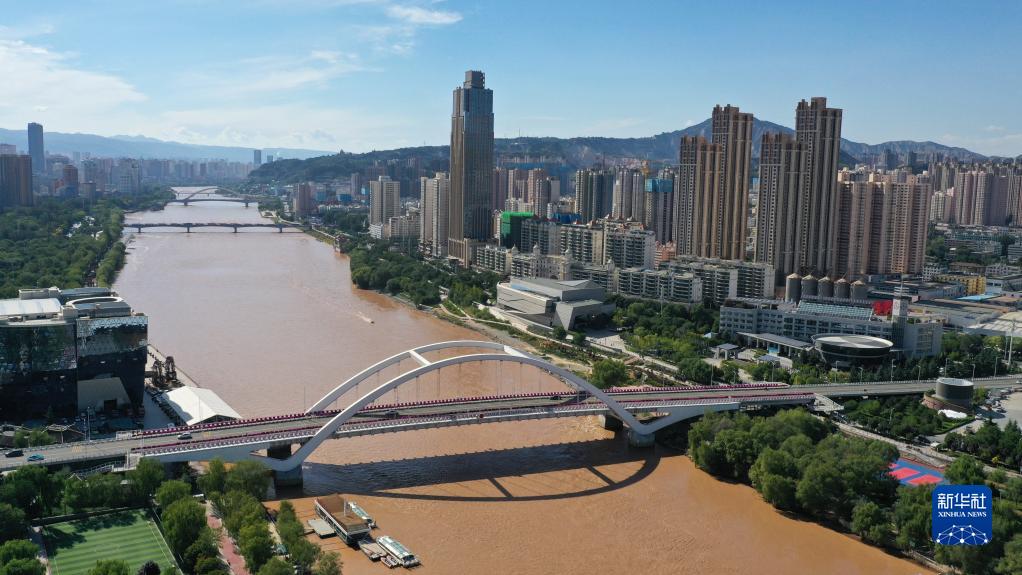 這是在甘肅省蘭州市拍攝的黃河兩岸城市風(fēng)光(9月5日攝,無人機(jī)照片)。新華社記者 陳斌 攝