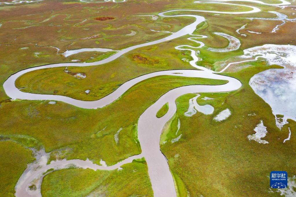 9月17日拍攝的阿萬倉濕地風(fēng)光(無人機(jī)照片)。新華社記者 郎兵兵 攝