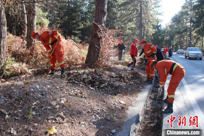 消防隊員和地方民眾一起清理林下可燃物?!⊥鯘蓷?攝