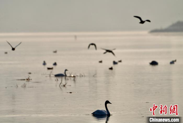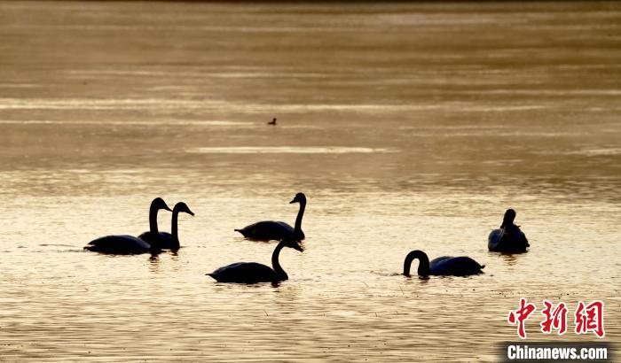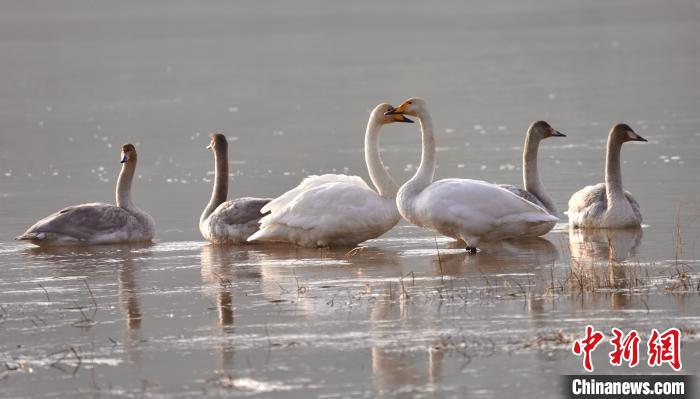 圖為青海省海東市化隆縣黃河流域的天鵝?!±钣穹?攝