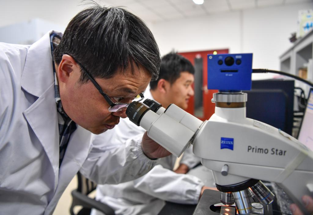 在西藏高原生物研究所,楊樂在實(shí)驗(yàn)室中觀察動(dòng)物標(biāo)本(3月2日攝)。新華社記者 晉美多吉 攝