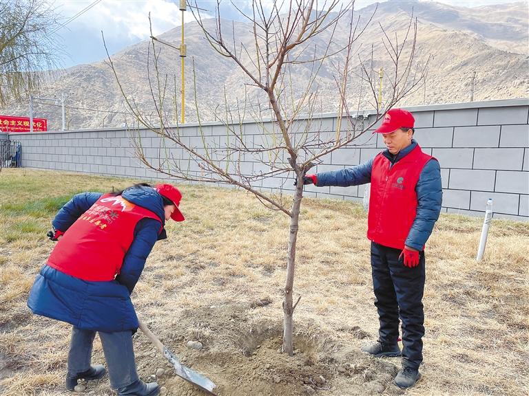 拉薩市城關(guān)區(qū)娘熱街道植樹護綠 美化家園