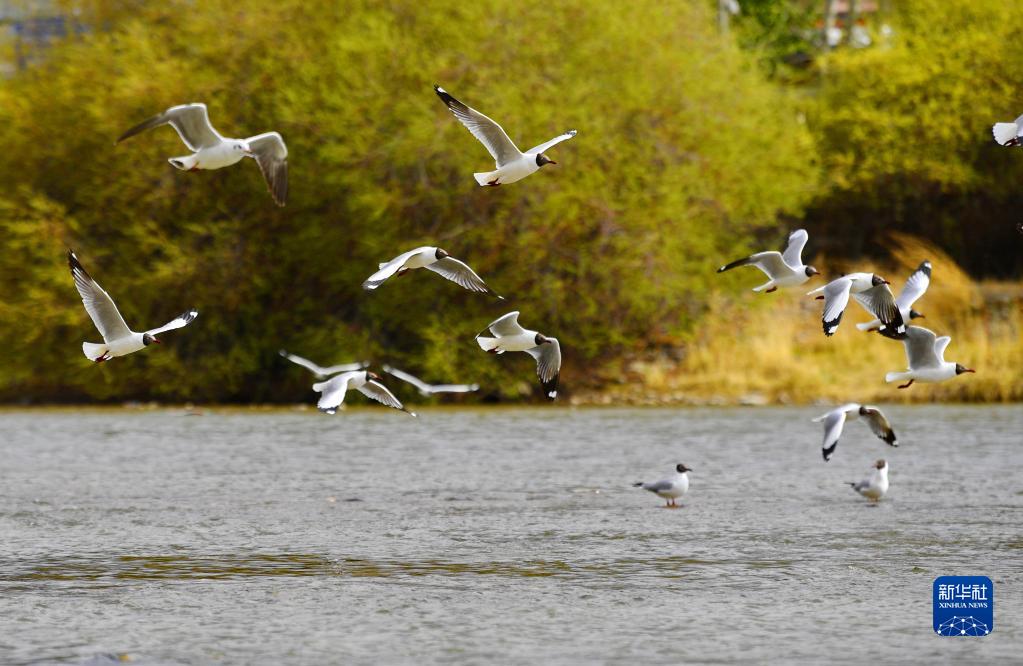 棕頭鷗盤(pán)旋在拉薩河上(4月16日攝)。新華社記者 張汝鋒 攝