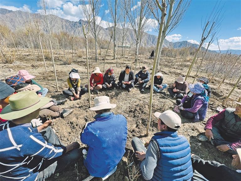 圖為植樹(shù)現(xiàn)場(chǎng),群眾認(rèn)真聽(tīng)宣講員解讀黨的二十大精神。記者 央金 攝