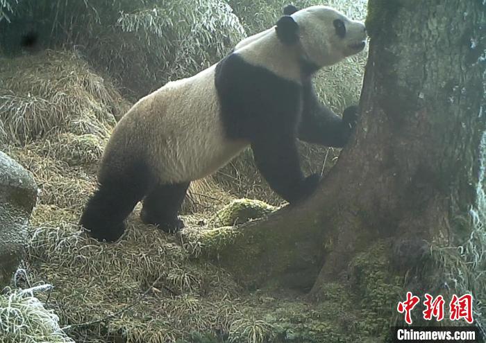 紅外相機(jī)拍攝到的野生大熊貓?!〈笮茇垏夜珗@平武老河溝片區(qū)供圖