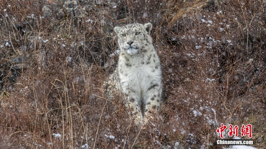 四川甘孜:雪豹一家漫步雪中