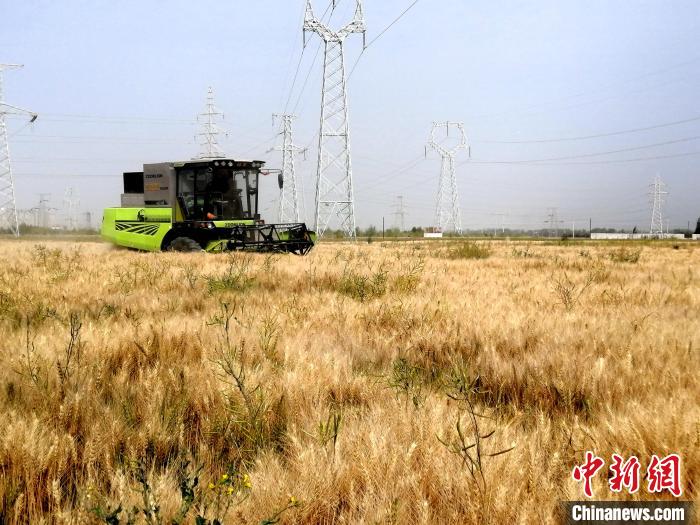 連日來(lái),中國(guó)“鹽湖城”青海省格爾木市小麥進(jìn)入收割期。田野里,機(jī)聲隆隆,一臺(tái)臺(tái)聯(lián)合收割機(jī)穿梭麥田中,“吞”穗“吐”麥,一派豐收景象。