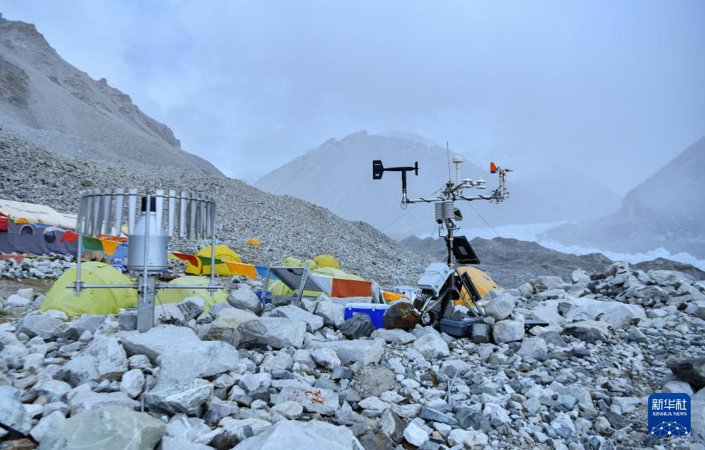 位于海拔5700米卓奧友峰前進(jìn)營地的自動氣象站(9月29日攝)。新華社記者晉美多吉 攝