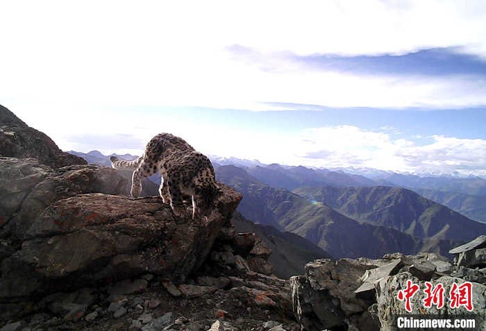 圖為8月6日,西藏拉薩市堆龍德慶區(qū)“乃朗谷雪豹重要棲息地”內(nèi)紅外線相機(jī)拍攝到的雪豹。 中新社發(fā) 山水自然保護(hù)中心 供圖