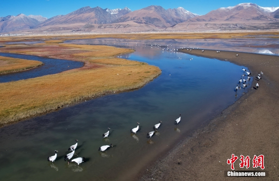 10月23日,成群的黑頸鶴在拉薩市當(dāng)雄縣阿熱濕地內(nèi)覓食。黑頸鶴是全球十五種鶴類中,唯一在高原地區(qū)繁殖和越冬的鶴類,屬中國國家一級(jí)保護(hù)野生動(dòng)物。 [詳細(xì)]