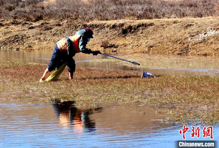 圖為管護(hù)員清理洮河沿線(xiàn)垃圾。薛蒂 攝