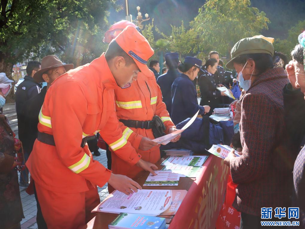 活動現(xiàn)場,林芝市森林消防支隊(duì)發(fā)放宣傳手冊。