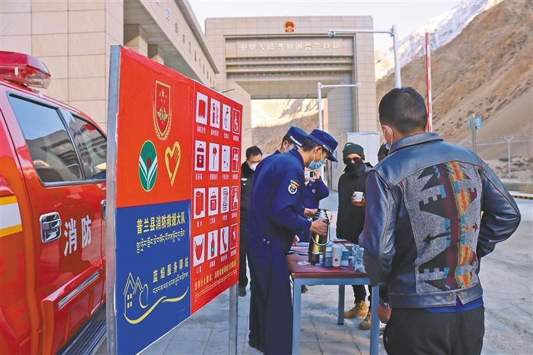 消防宣傳進口岸 雪域藍(lán)焰展形象