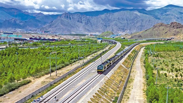 圖為拉林鐵路沿線的綠化工程(資料圖)。記者 旦增西旦 攝