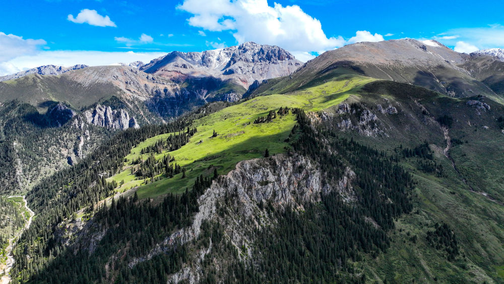 這是2023年6月18日在青海省玉樹藏族自治州囊謙縣拍攝的風光(無人機照片)。新華社記者 張龍 攝