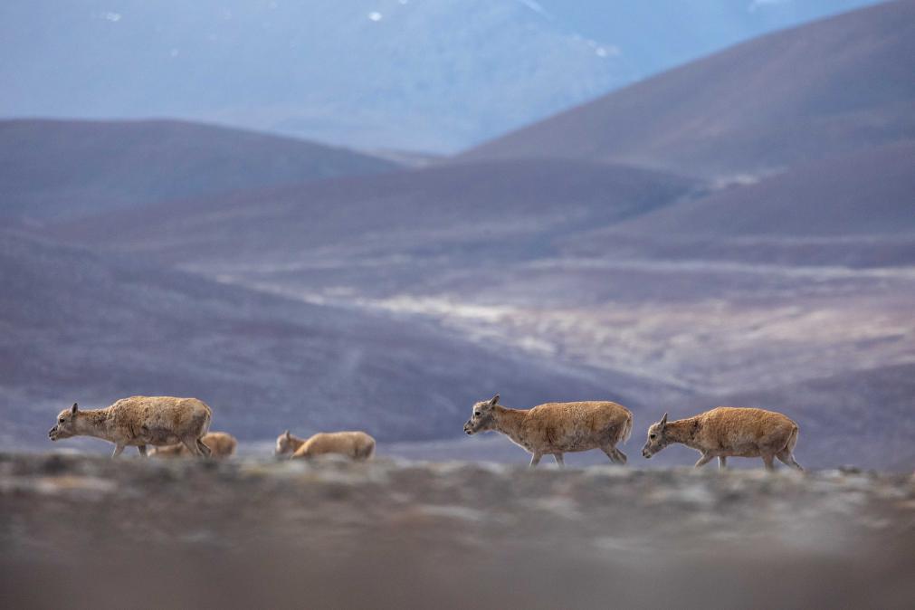 6月15日清晨在羌塘國家級自然保護區(qū)拍攝的遷徙中的母藏羚羊。