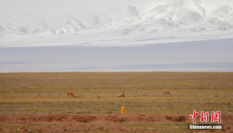 6月20日,可可西里藏羚羊在青藏公路一側(cè)覓食??煽晌骼锲骄0卧?600米以上,氣候干旱寒冷,是國家一級保護(hù)動物藏羚羊重要的棲息地。每年5月至7月是藏羚羊的遷徙產(chǎn)仔季,此時(shí)也是三江源國家公園長江源園區(qū)可可西里管理處6個生態(tài)保護(hù)站最繁忙的巡護(hù)時(shí)期。近些年,自駕路過可可西里的游客越來越多,生態(tài)管護(hù)員們每日進(jìn)行多次巡護(hù),在保護(hù)藏羚羊遷徙的同時(shí),在青藏公路撿拾垃圾、為游客提供幫助、進(jìn)行科普宣教??煽晌骼锕芾硖幬宓懒罕Wo(hù)站生態(tài)管護(hù)員德尕說:“我從小生活在這里,成為管護(hù)員已經(jīng)10年。每天的巡護(hù)都在重復(fù),但我沒感覺辛苦,看到公路邊的藏羚羊、藏野驢自由自在,心里特別舒服、高興?!?/p>