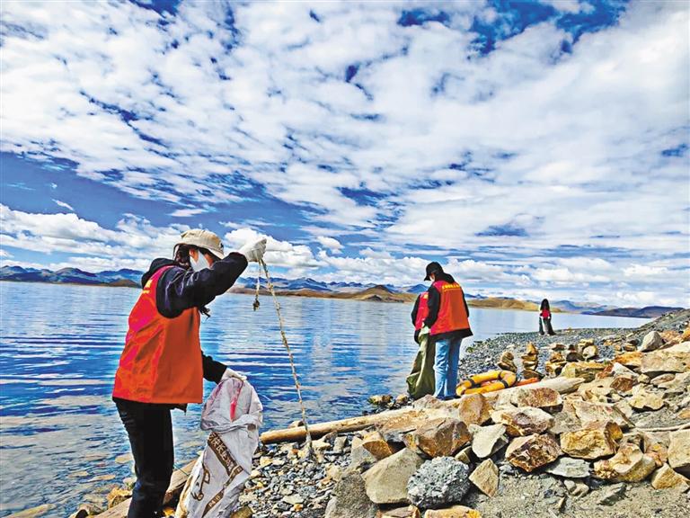 近日,山南市浪卡子縣組織干部群眾開展“心系母親湖 共護生態(tài)家園”主題環(huán)?;顒樱謇硌蚝匕?、河道溝渠等區(qū)域的垃圾,以實際行動守護良好的自然生態(tài)。