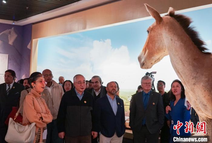 圖為代表團一行在青海省自然資源博物館內(nèi)了解青海省生物多樣性保護情況。中新社記者 馬銘言 攝