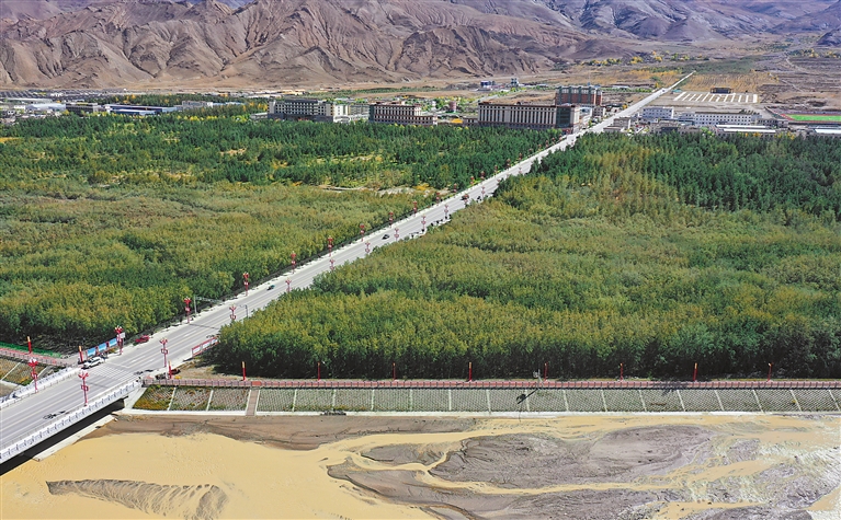 山南市隆子縣地處高寒干旱區(qū),平均海拔3800多米,冬季寒冷漫長,漫天風沙嚴重影響當?shù)厝罕娚a生活。從20世紀60年代開始,世代飽受風沙肆虐的隆子人民,開始栽種沙棘,接續(xù)治沙。一場撼人心魄的“生態(tài)革命”,在隆子河谷悄然拉開帷幕。經過半個多世紀的辛勤栽植,隆子河谷筑起了一道40余公里、面積超50平方千米的“綠色長城”,2019年被世界紀錄認證機構WRCA認證為“世界最大人工種植連片沙棘”。俯瞰這片沙棘林,猶如一條“綠色哈達”,守護著這里的碧水藍天。