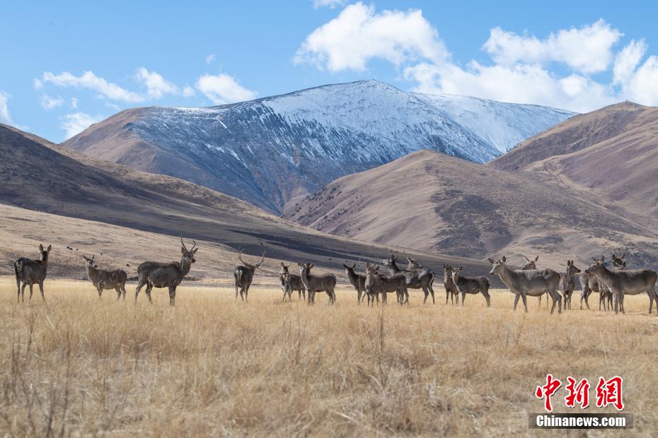 11月19日,西藏自治區(qū)昌都市類(lèi)烏齊縣長(zhǎng)毛嶺鄉(xiāng)協(xié)塘村馬鹿國(guó)家級(jí)自然保護(hù)區(qū)的草原上,西藏馬鹿在覓食、嬉戲。據(jù)悉,西藏馬鹿是馬鹿的一個(gè)亞種,屬?lài)?guó)家二級(jí)重點(diǎn)保護(hù)動(dòng)物。20世紀(jì)90年代初,國(guó)際瀕危動(dòng)物會(huì)議認(rèn)為西藏馬鹿已經(jīng)“絕種”,而西藏野生動(dòng)物保護(hù)工作者在類(lèi)烏齊縣考察時(shí)確定西藏馬鹿仍然存在,并于1993年設(shè)立類(lèi)烏齊馬鹿自然保護(hù)區(qū),2005年升級(jí)為類(lèi)烏齊馬鹿國(guó)家級(jí)自然保護(hù)區(qū)。圖為西藏馬鹿在類(lèi)烏齊馬鹿國(guó)家級(jí)自然保護(hù)區(qū)內(nèi)覓食。