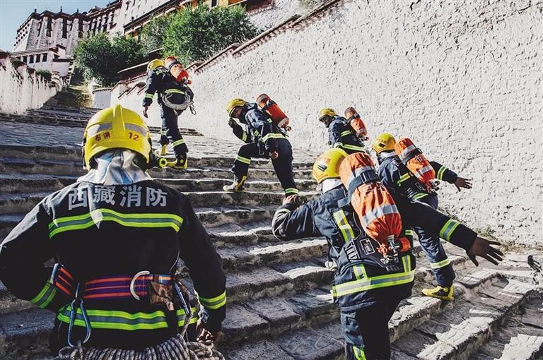 為了確保布達(dá)拉宮文物古跡安全,自1984年起,一個(gè)消防班入駐布達(dá)拉宮。2003年,布達(dá)拉宮消防班升格為消防中隊(duì)。2005年,再次升格為消防救援大隊(duì)。目前大隊(duì)共有漢、藏等多個(gè)民族的消防指戰(zhàn)員49人,他們每天用“眼看、手摸、鼻聞、儀器測(cè)”等方式,檢查識(shí)別電氣線路絕緣是否老化、酥油燈罩是否發(fā)燙、消防設(shè)施是否完好。入駐至今,消防指戰(zhàn)員走過的檢查路程相當(dāng)于繞地球3圈半。