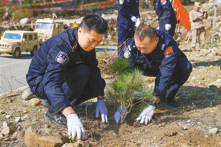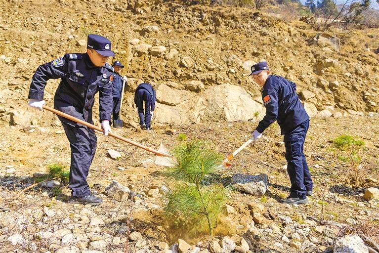 活動現(xiàn)場,民警與群眾組成協(xié)作小組,揮鍬鏟土、扶苗培土,嚴格按照技術(shù)標(biāo)準栽種松、柏等樹苗。經(jīng)過數(shù)小時奮戰(zhàn),數(shù)百株樹苗迎風(fēng)挺立,為高原大地披上嶄新綠裝。