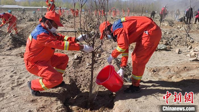 圖為日喀則市森林消防大隊義務(wù)植樹活動現(xiàn)場。洛桑頓珠 攝