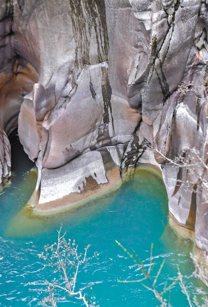 在丙察察公路接近察隅縣城的位置,國道219線與559線交匯點(diǎn),有一處由水流反復(fù)沖刷激蕩出的地質(zhì)奇觀——水磨巖。