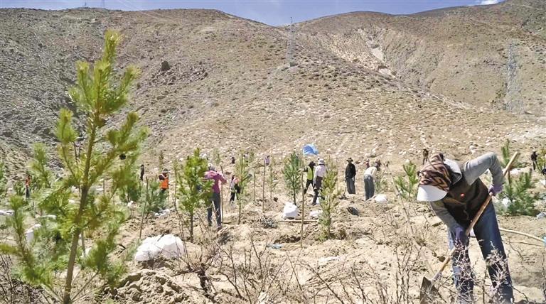 圖為六月八日,南北山綠化工程桑日段植樹現(xiàn)場。 通訊員 阿旺金巴 攝