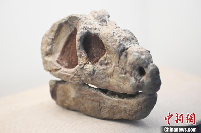 6月16日,在位于甘肅省張掖市肅南裕固族自治縣的祁連山國家公園自然博物館展陳的二疊紀大山口珍稀獸頭骨。中新社記者 李亞龍 攝