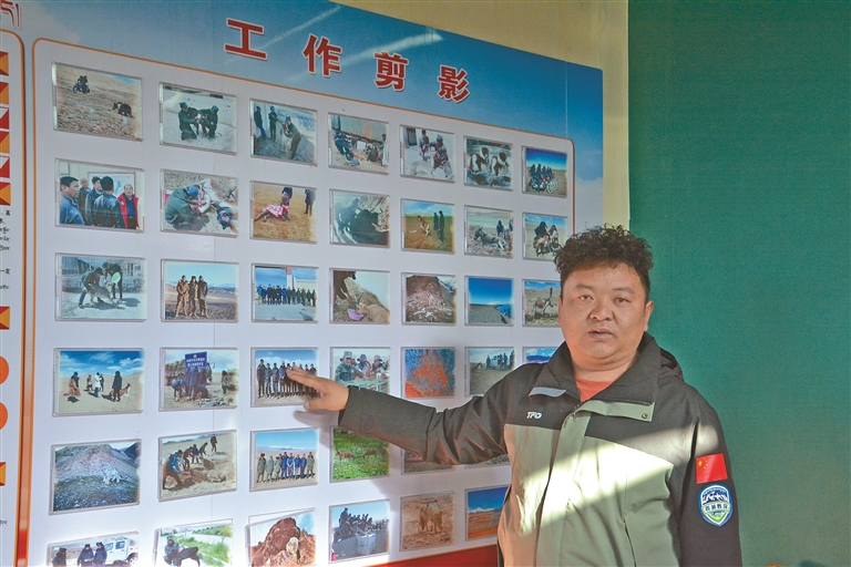 尼瑪縣羅布玉杰管護(hù)站負(fù)責(zé)人格桑倫珠在介紹野生動(dòng)物保護(hù)工作開展情況。記者 汪純 攝