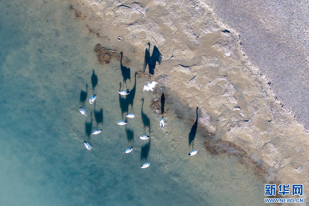 12月19日,在西藏日喀則市南木林縣的雅魯藏布江河畔拍攝的黑頸鶴。新華網(wǎng) 旦增努布 攝