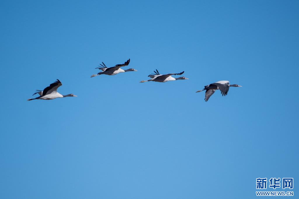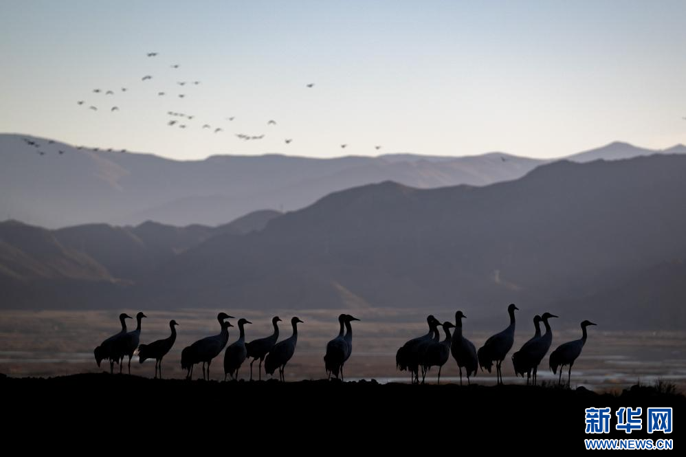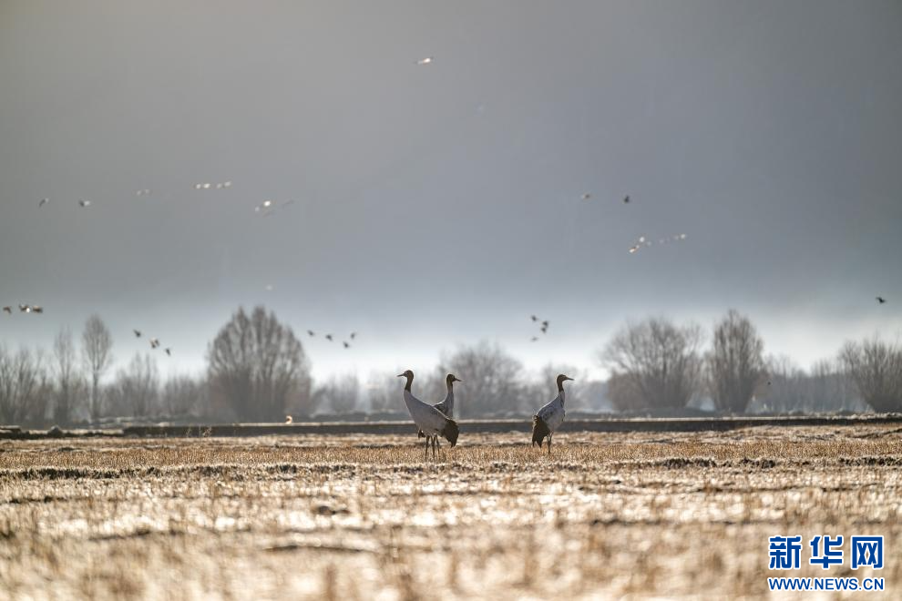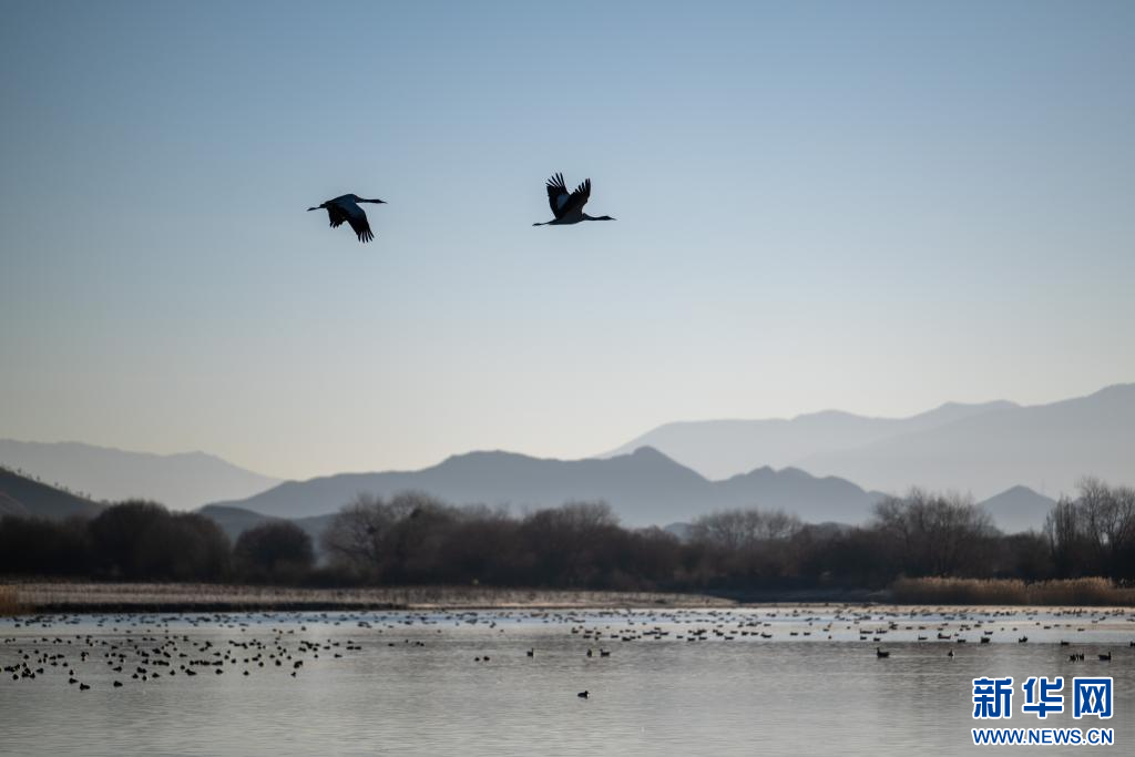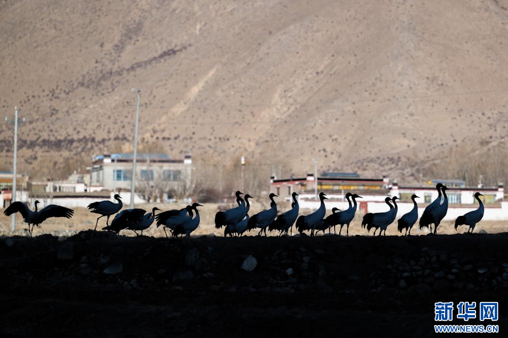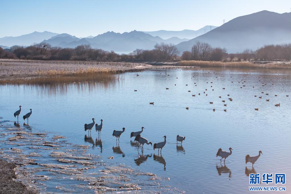 12月18日,在西藏日喀則市南木林縣境內拍攝的黑頸鶴。新華網(wǎng) 旦增努布 攝